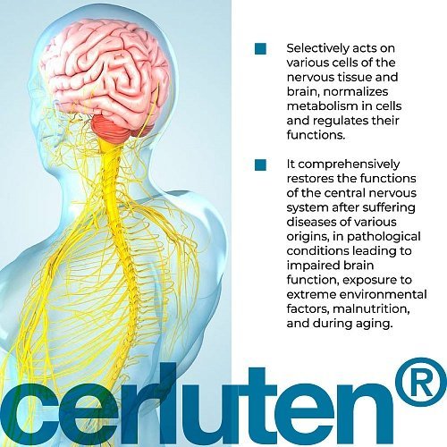 Cerluten Lingual is a highly effective peptide complex designed to support the central nervous system and improve brain health. The product contains a unique blend of peptides, specifically isolated from the brain, that act on various cells of the nervous tissue. These peptides normalize cellular metabolism and regulate brain function, ensuring optimal neural activity.