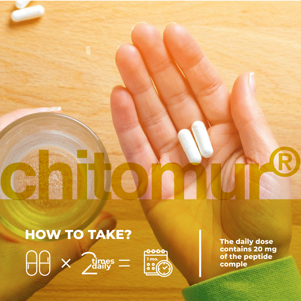Chitomur е научно разработен пептиден комплекс, формулиран за подпомагане здравето на отделителната и половата система. Помага за възстановяване на нормалната функция на пикочния мехур, подобрява мускулния тонус и засилва метаболизма в стената на пикочния мехур. Подходящ е както за мъже, така и за жени с проблеми, свързани с пикочния мехур.