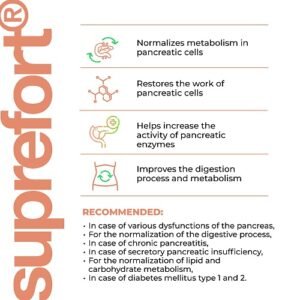 Клинични проучвания потвърждават ефективността на Suprefort®/Супрефорт при възстановяване на панкреасната функция след заболявания, метаболитни нарушения, въздействие от неблагоприятна околна среда, неправилно хранене или процесите на стареене. Продуктът е отличен избор за всеки, който търси дългосрочна подкрепа за панкреаса и храносмилането.