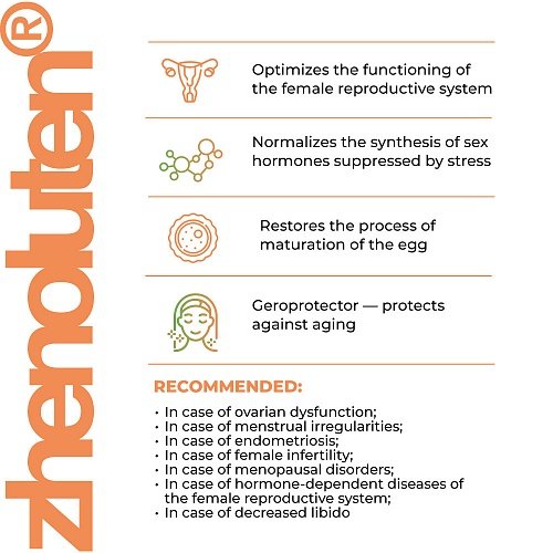 - Възстановява функцията на репродуктивната система след менопауза или хормонални промени
